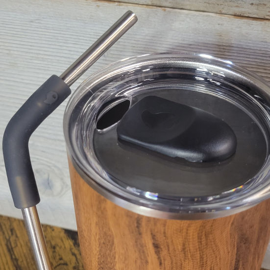 Stainless Steel Teakwood Tumbler with Straw