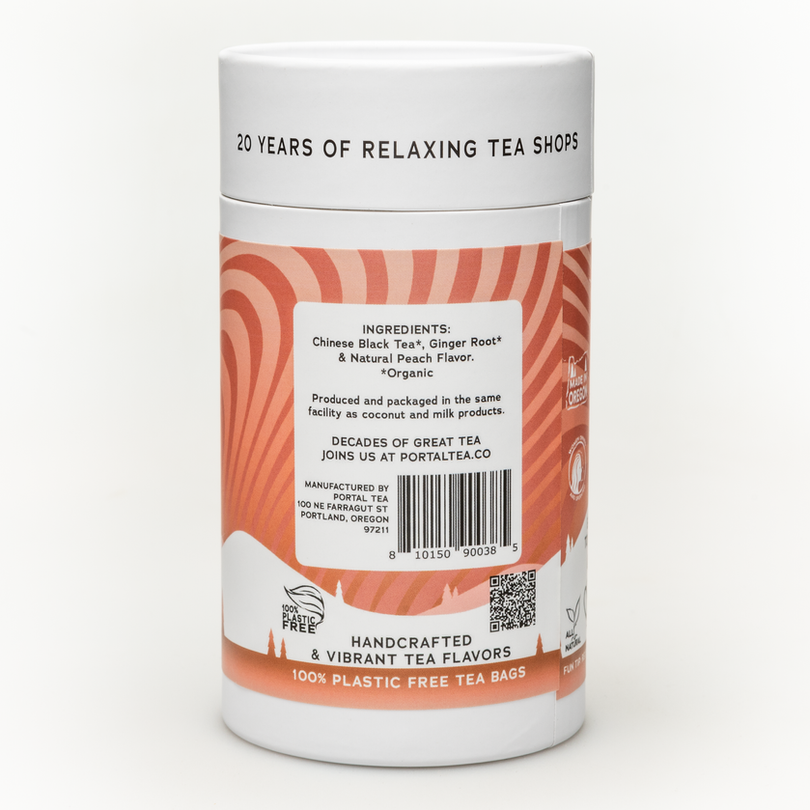 Ingredients: Chinese Black Tea, Ginger Root, Natural Peach Flavor