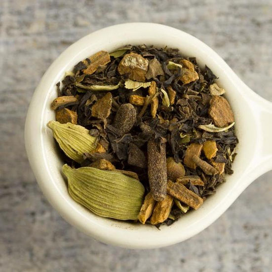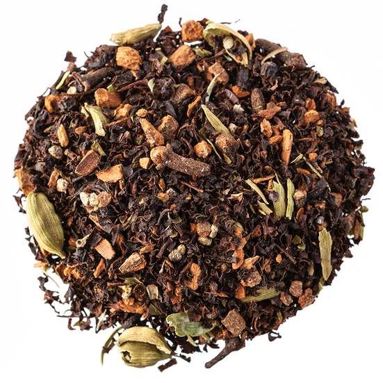 Ingredients: Decaf Indian Black Tea, Cardamom, Nutmeg, Peppercorn, Peppermint, Cinnamon, Clove