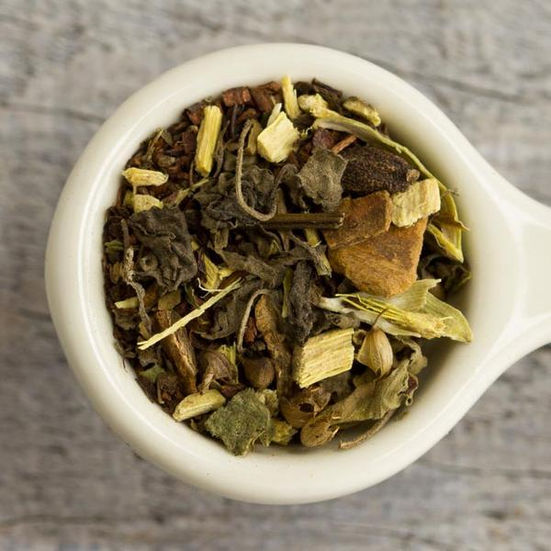 Ingredients: Honeybush, Tulsi, Nettles, Cinnamon, Peppermint, Clove, Licorice Root, Cardamom