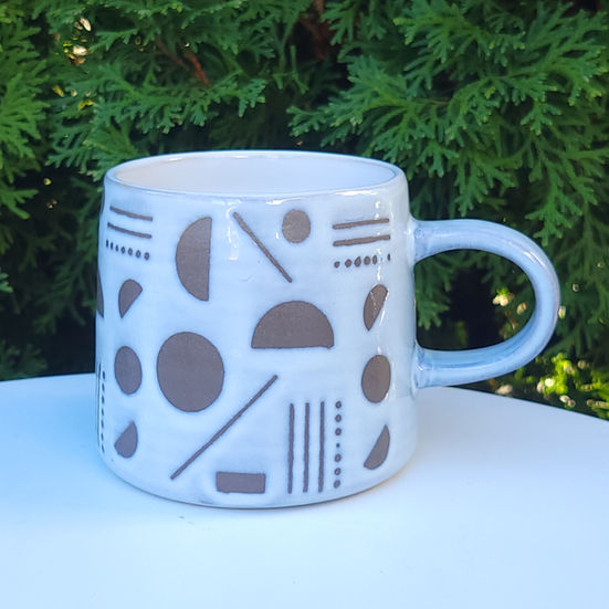 Black abstract shapes sit apart in interesting asymmetrical yet beautifully balanced arrangements on this Domino Mug. With an organic shape, ribbed texture and engaging patterns, this is a mug that's both a joy to hold and behold.